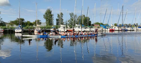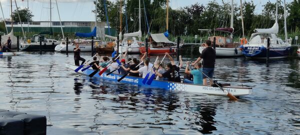 Wir trafen uns bei strahlendem Sonnenschein zum Drachenboot fahren. Das war für die meisten von uns eine völlig neue Erfahrung, aber wir haben uns allesamt ganz wacker geschlagen.
