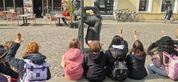 Nach dem Bibliotheksbesuch sind wir zum Italiener am Fischerbrunnen gegangen und haben Eis gegessen. Es war sehr lecker. Anschließend sind wir zurück zur Schule gefahren. In der sechsten Stunde stellten wir unsere Bücher vor und hatten noch etwas Zeit zum Lesen. Es war sehr schön.